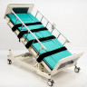 Медицинская кровать Интегра Электро для домашнего ухода, снабжённая электроприводными регулировками положения четырёхсекционного ложа и оригинально реализованной функцией кардио-кресло, представляющей из себя не только статичное полулежачее положение для бодрствования и терапии кардио-заболеваний, но и независимо выдвигающуюся из торца кровати, оборудованную электрическим санитарным устройством каталку для перемещения больного, с электроприводной регулировкой наклона спинки*.